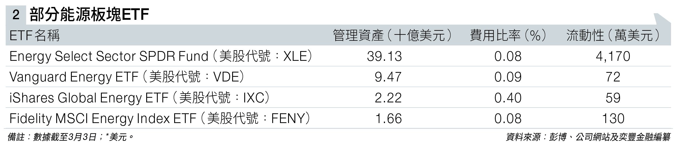 投資者亦可透過能源股票ETF投資於大型綜合石油企業及其他能源公司。油價上升時,能源企業的現金流及盈利通常改善,並可能帶動股價表現。部分企業亦提供較高股息,因此相關ETF較適合長期持有,且日常波動相對較低。