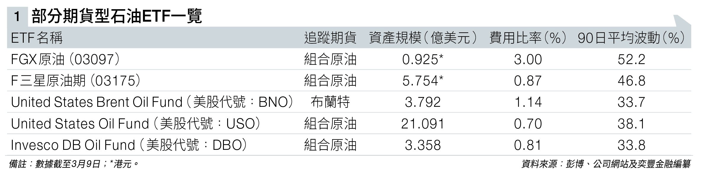 (一)期貨型石油ETF(見圖表一):最接近油價的對沖工具。