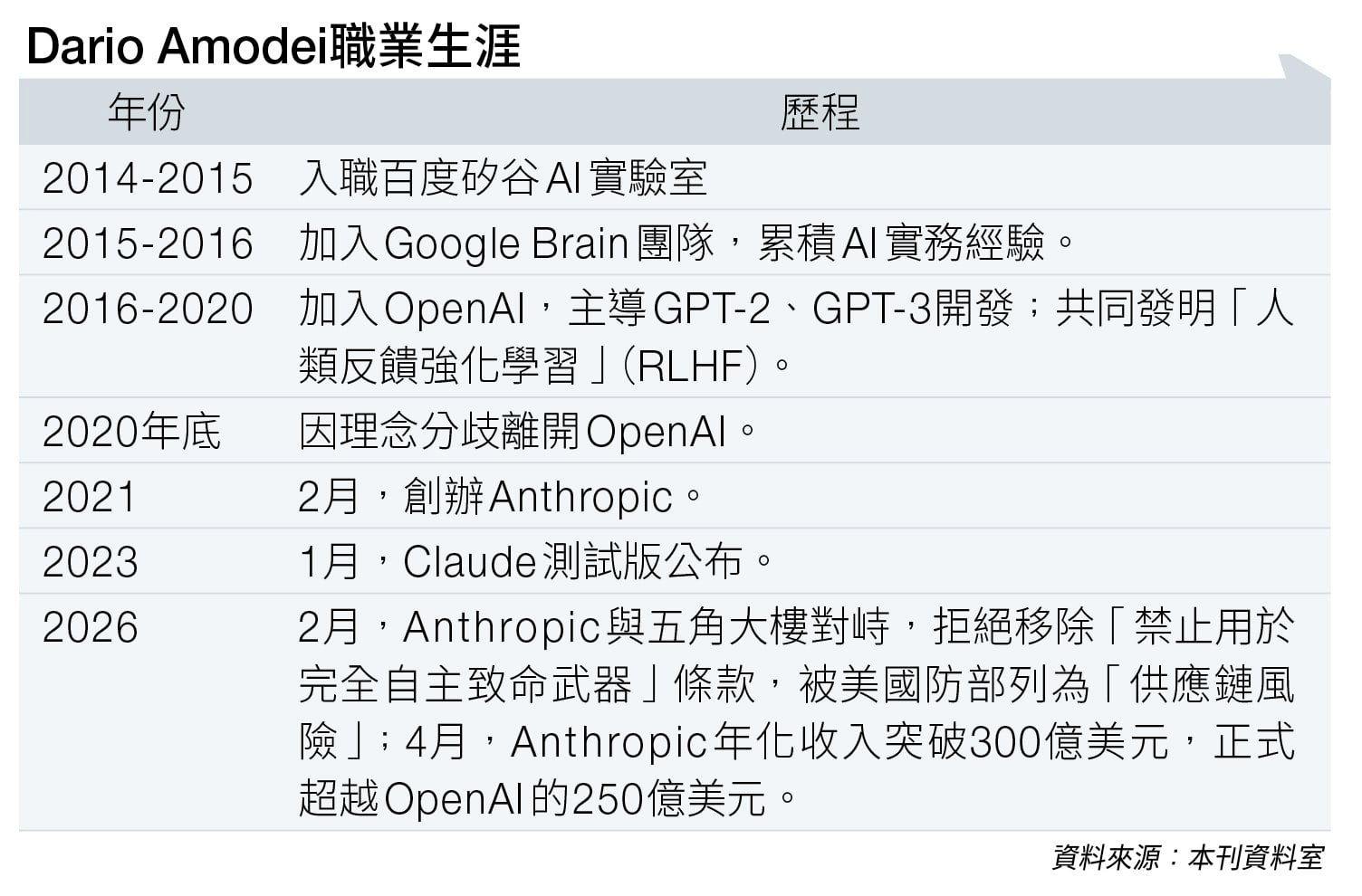 2014年史丹佛大學電腦科學教授、Coursera共同創辦人吳恩達招募Dario Amodei,加入百度集團(09888)的美國研究實驗室。