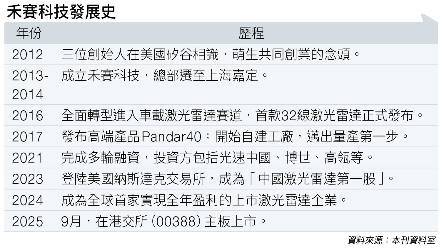 2023年2月,禾賽在美股上市。2025年9月,