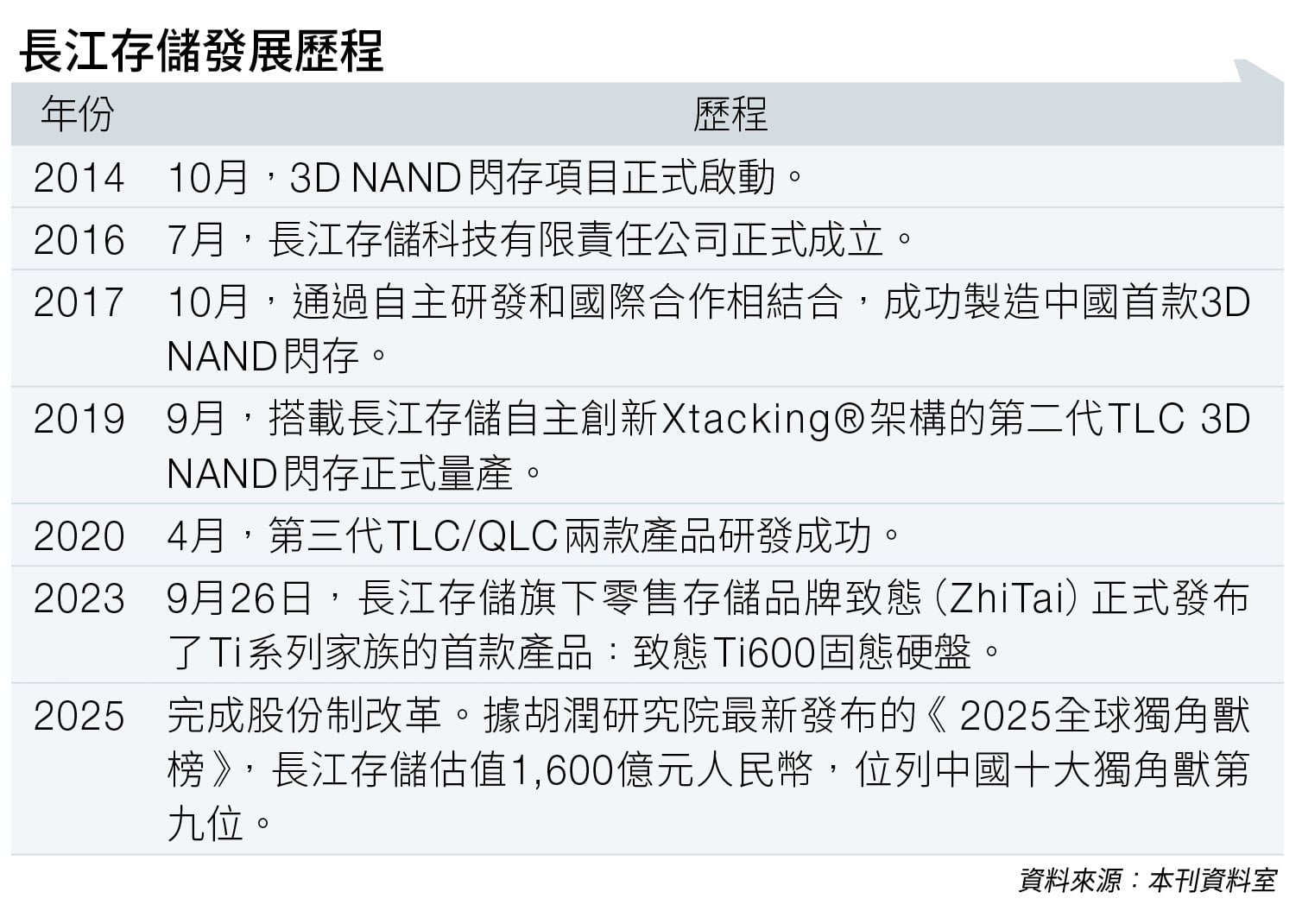 成立伊始,長江存儲整合了已成立十年的武漢新芯集成電路製造有限公司。武漢新芯最早是交給中芯國際(00981)營運,惟發展不順利,到2013年,中芯國際選擇退出。