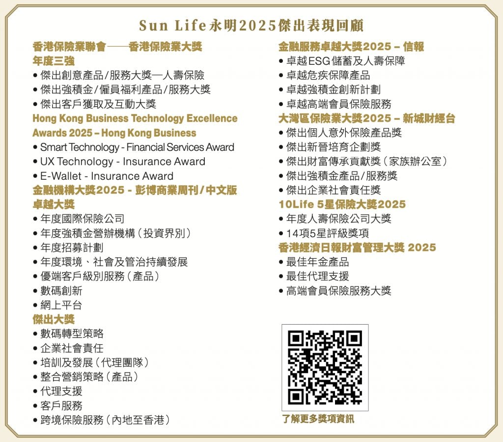 更值得注意的是,她一再強調的一個詞:長期主義。她強調,公司「秉持『長期主義驅動持續增長』的理念」。這意味著Sun Life永明不僅追求短期的業績突破,更著眼於長期價值的累積與顧客關係的經營。透過持續優化產品設計、推動金融教育普及,以及強化高淨值與退休保障等領域的佈局,Sun Life永明得以在市場波動中保持穩健,並為客戶提供長遠的財務安全與健康保障。