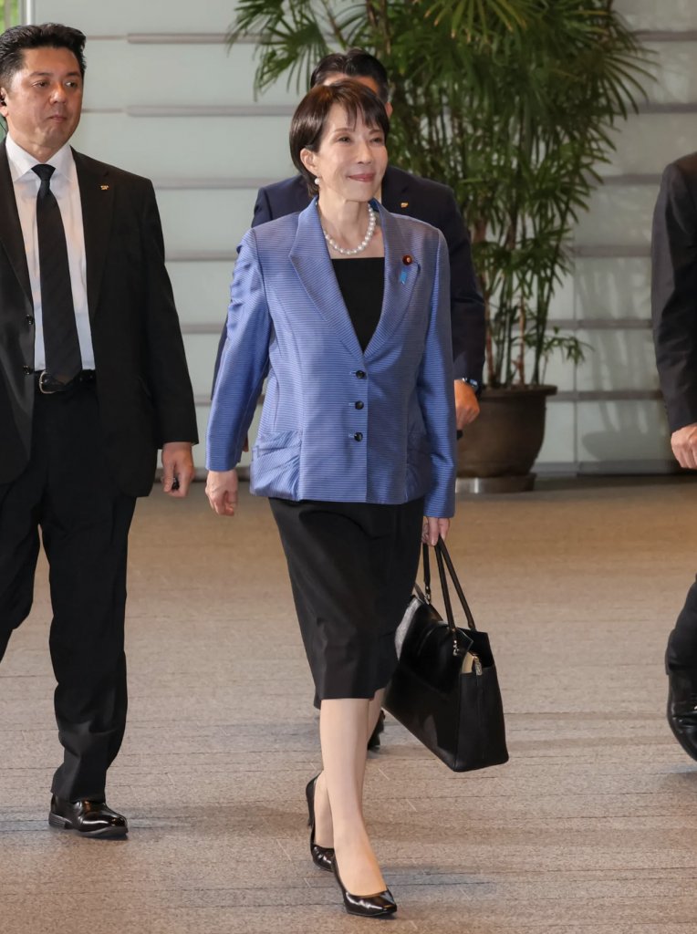 然而,其魅力不止於政壇風雲,更意外延伸至時尚領域——上任首日走進首相官邸,手提一隻黑色銀扣大手袋的典雅身影,瞬間引爆網路討論,被網友封為「早苗包」(早苗バッグ),帶動百年皮革品牌一夕爆紅,現時8色全線缺貨,預購還得待至明年5月。