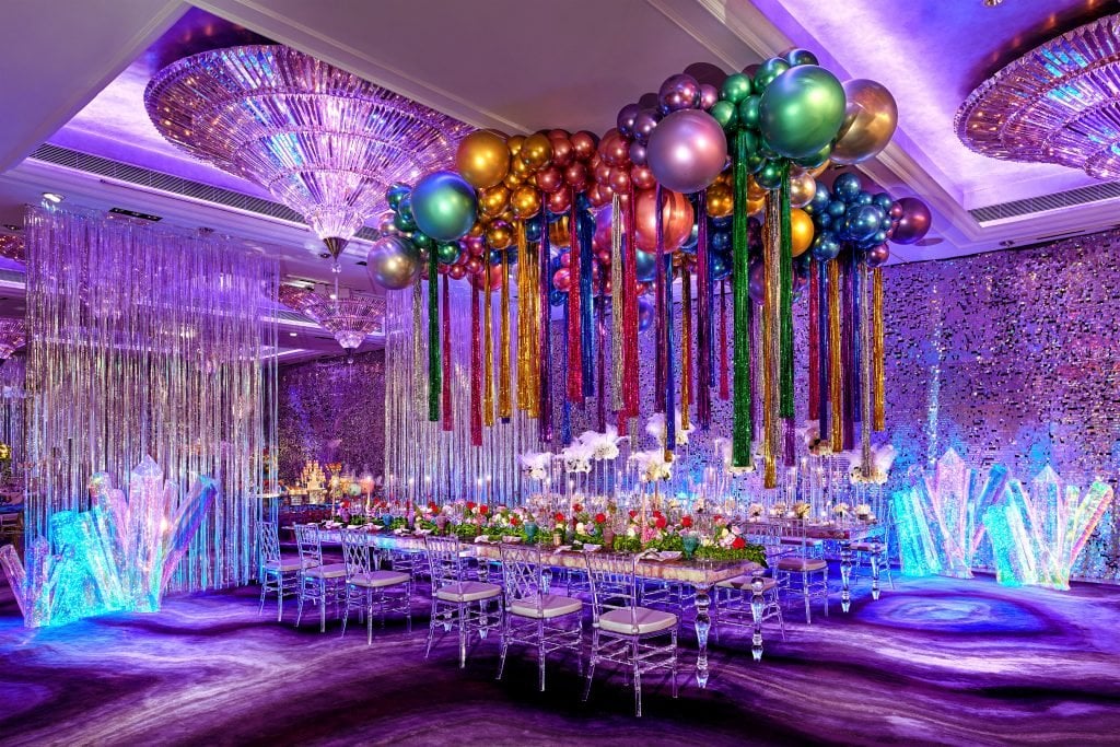 酒店擁有超過 16,000 平方呎的靈活宴會空間 。其中位於 18 樓頂層的無柱式宴會廳,佔地 10,000 平方呎,可容納多達 800 名賓客 。場內配備 18 盞華麗的手製捷克水晶吊燈,以及具有 25,000 種色彩變化組合的 LED 燈光系統 ,能配合不同企業形象營造出震撼的視覺效果。此外,酒店亦設有 8 間間隔靈活的多功能會議廳,配備頂尖視聽設備,適合舉辦各類 MICE 活動及商務會議 。