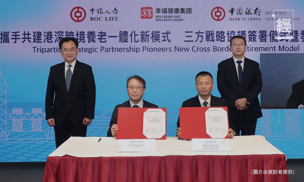 究其原因,因為大灣區交通變得便利,內地包括醫療各方面的生活質素不斷提升,令跨境養老吸引力大增。2025年底,中銀人壽、深圳市幸福健康產業(集團)有限公司(深圳幸福健康集團)與中國銀行股份有限公司深圳市分行(中國銀行深圳市分行)正式簽署戰略合作框架協議,三方將整合金融、康養資源優勢,共同打造創新的「金融+康養」跨境養老綜合解決方案。