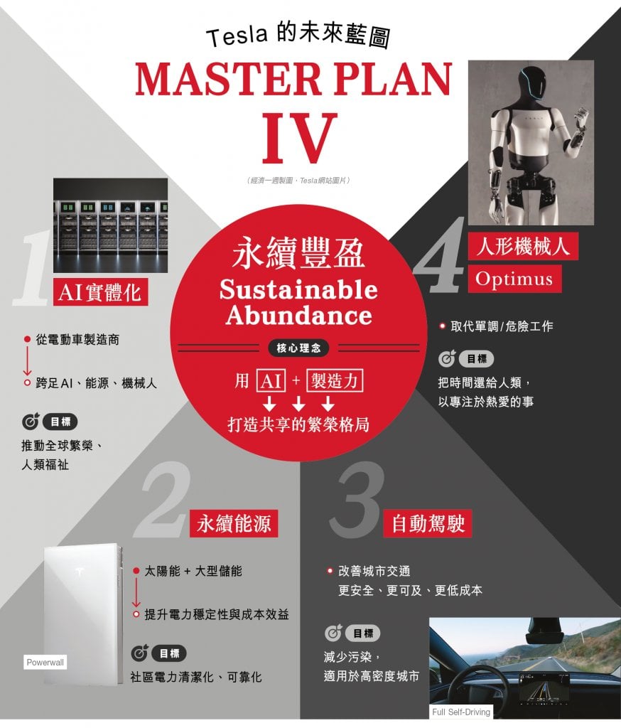 未來這場「技術文藝復興」能否如期實現,仍有待市場與時間的驗證。值得注意的是,過去Tesla已經三度發表 Master Plan。前兩份內容完整,涵蓋具體產品與清晰路線;第三份則以大量數據支撐去碳化社會的構想。