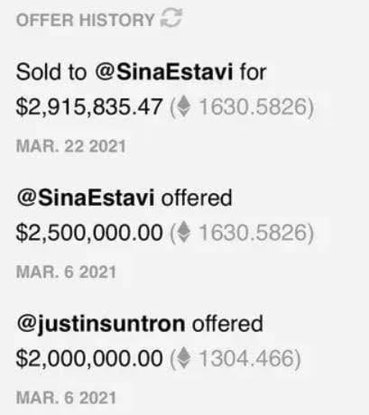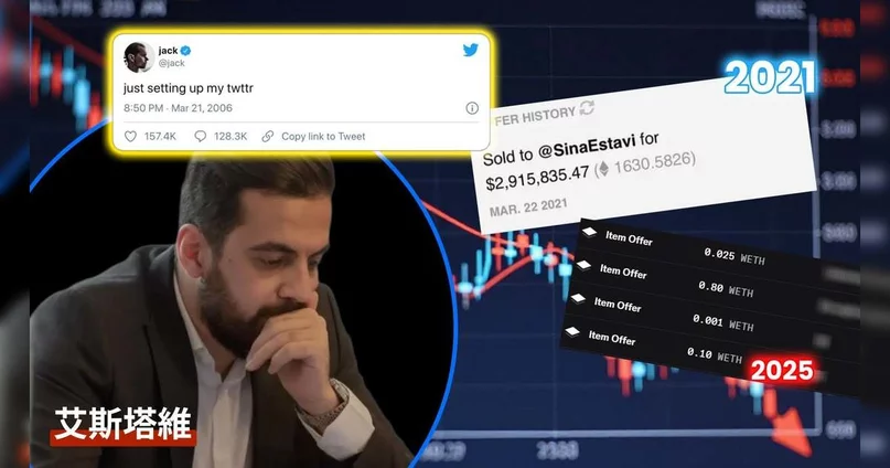 故事主角是加密貨幣企業家艾斯塔維(Sina Estavi)。2021 年 3 月,他在 NFT 平台 Valuables(Cent 旗下)以 1,630.58 枚以太幣買下 Twitter 共同創辦人 Jack Dorsey 的首則推文 NFT;該推文內容是 2006 年 3 月 21 日發出的「just setting up my twttr」,當時交易金額約 290 萬美元。