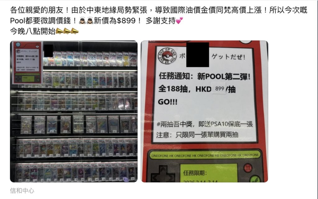 該間卡舖在社交平台宣布,由於「中東地緣局勢緊張」,導致國際油價及金價飆升,連帶熱門卡牌「梵高比卡超」的價格亦隨之上漲。因此,店家決定將原價每次 699 元的抽獎費用,大幅上調至每次 899 元,加幅接近三成。此言論一出,隨即引起玩家群體強烈反彈,網民直斥店家加價理由牽強,甚至有利用戰爭「抽水」之嫌。大批網民紛紛留言嘲諷,質疑店家的卡牌是否親自去中東挖掘回來,更有網民怒斥其行為根本是「發戰爭財」,邏輯之荒謬令人啼笑皆非。