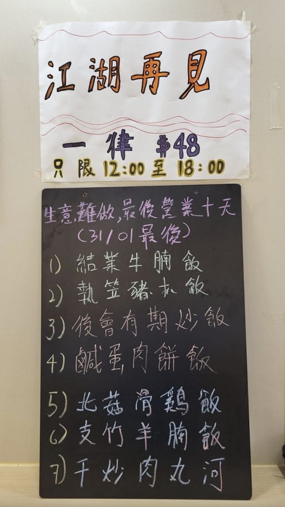 旺角火鍋店自嘲「執笠餐牌」告別:48元結業牛腩飯惹熱議 網民:見到乾炒肉丸河就知死因?