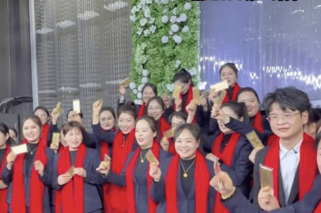 在近日舉行的公司年會上,這位年輕老闆為全體員工準備了誠意十足的驚喜。除了每位員工獲贈一克價值約 500 元人民幣、帶有他親筆簽名的「金鈔」外,現場還準備了數十萬元現金進行「蒙眼撈錢」活動,讓員工在歡笑中直接將現金帶回家。據悉,自店舖開業以來,他累計發放的黃金已達 80 至 90 克,他表示 2025 年大家都過得不容易,只希望員工能開心一點。