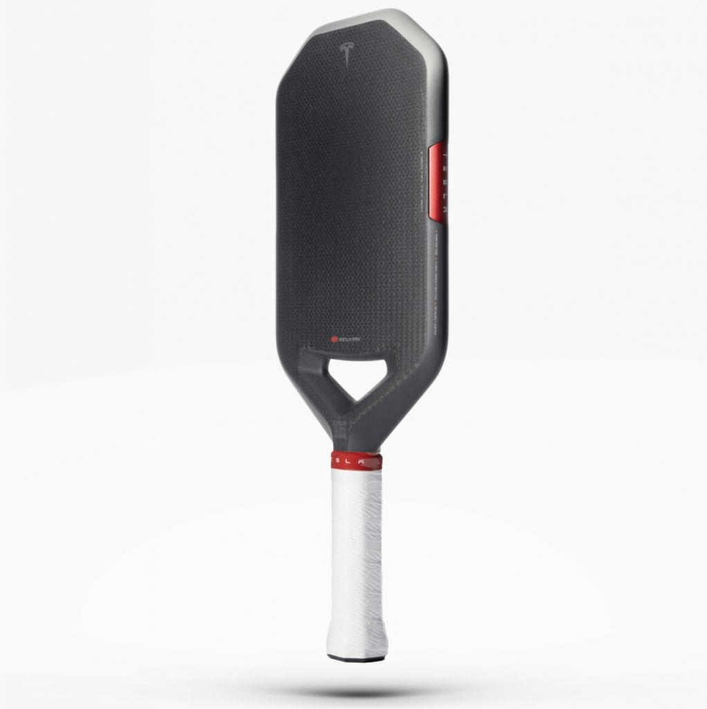 這款匹克球拍採用特斯拉簡約的設計語言搭配其招牌標誌,並非單純的品牌行銷,而是一項真正的工程合作計畫。據Selkirk共同擁有人暨研發總監Tom Barnes透露,特斯拉設計團隊與Selkirk的研發小組花費了一年多的時間,交換數據、優化幾何設計,並對原型進行壓力測試。球拍採用碳纖維材質外框與泡棉填充物料內核,最終原型經過特斯拉的空氣力學測試後定型,官方稱其「專為高性能比賽而優化」。