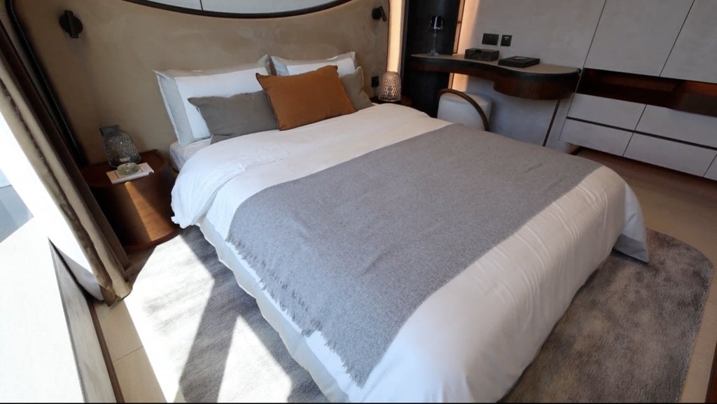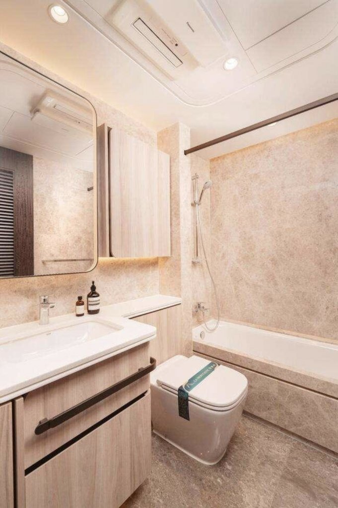 主人睡房空間感十足,即使放置雙人床後仍可三邊落床。設計風格清雅耀目,特設寬敞的衣櫃位,其門板採用特色油漆,與房間內的金屬線條裝飾互相輝映,提升整體藝術格調。主人套廁與客廁均設有大浴缸,並以天然石鋪砌牆身與地板,營造出酒店級精緻奢華格調。