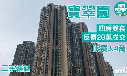 二手速遞|寶翠園四房雙套反價28萬成交 呎價3.4萬