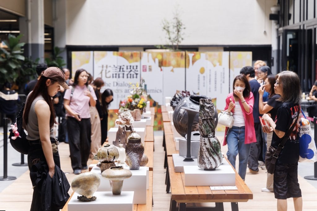 位於中環街市地下 Oasis 的「花語器」聯展,由資深陶藝家伍嘉浩牽頭,「香港陶器市」團隊顏招富及蔡慧玲精心策劃。展覽匯聚逾 20 位跨地域陶藝家及名人,以「自由花花器」為題,展出別具個人風格的創作。
