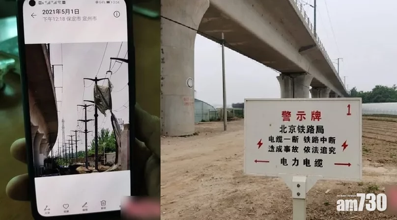 還記得在內地五一長假首天,河北某農地一塊膠膜被大風吹到掛在京廣高鐵架空電纜上,導致北京西站連續兩天共取消24班列車嗎?共青團旗下報章《中國青年報》今日詳述背後故事,指河北定州楊家莊鄉八里店村57歲姓趙農民為省錢,其花生田使用的並非農用地膜,而是較厚又硬的廢棄溫室大棚塑膠布,未料五一當天刮起大風,將十多米長的塑膠布捲至幾十米外的京廣高鐵鐵路橋旁邊的架空電纜上,尾部不斷捲上鐵路橋,結果一列高鐵駛過時,將塑膠布「割」開,一塊纏在鐵路橋上的高鐵架空電纜,另一塊仍然掛在橋邊架空電纜,尾部拖到地面。