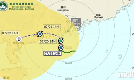 若「查帕卡」進一步增強及接近澳門,明日(20日)發出8號風球的可能性不能排除,明日凌晨至早上發出 8號風球的機會是較低至中等。氣象局正密切監察其發展。