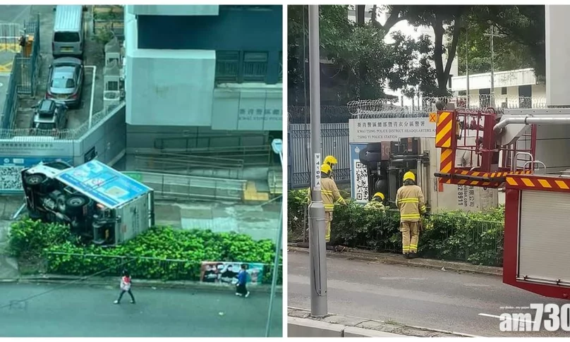天眼直擊|貨車青衣警署外自炒翻側險撞途人