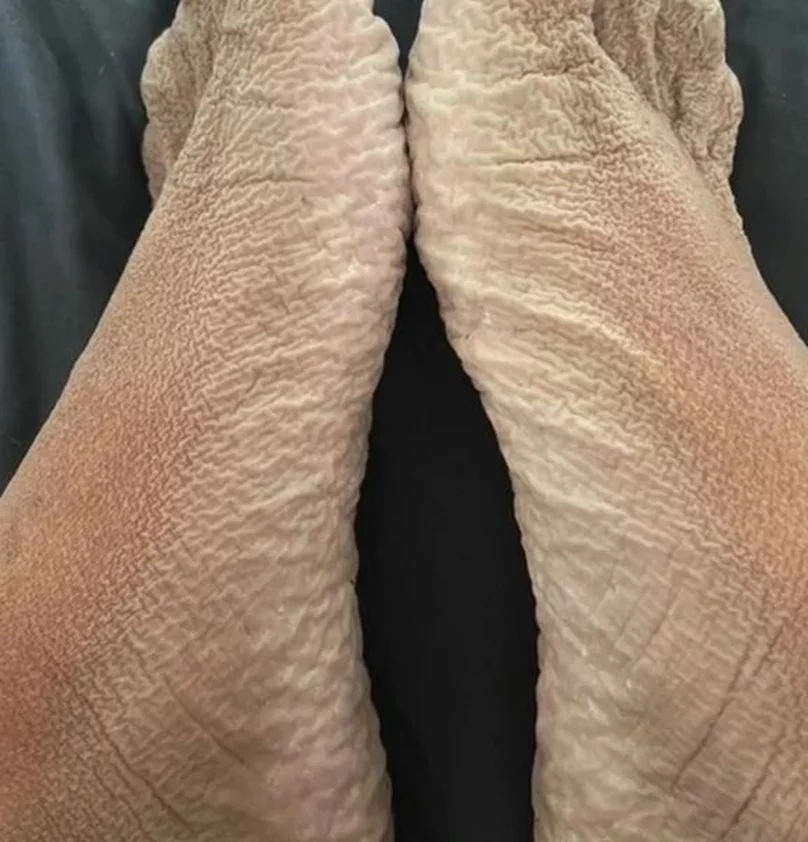 不少人都試過泡澡太久,令皮膚變得皺巴巴。根據太陽報報道,國外一名女網民早前就在網路發文求助,表示自己因在水中待了超過16小時,泡得雙腳發皺,皺褶佈滿整個腳趾、腳板、腳底和腳背,而且皮膚還出現發灰的情形,覺得相當詭異,因此向尋求大眾意見怎麽解救。