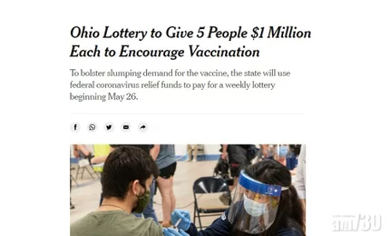 新冠疫苗|俄亥俄州推百萬美元大抽獎鼓勵接種