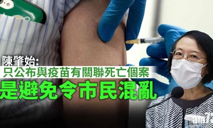 新冠疫苗臨床事件評估專家委員會開會,通過即日起,個別死亡個案只會在與疫苗接種有潛在關聯的情況下才公布。食物及衞生局長陳肇始在電台節目中表示,當局一直存在透明度,異常事件亦有通報機制,她指目前資訊很多,若市民只見到某些資訊,無機會了解全面,將只見樹木而未能看見見森林,或令市民資訊混亂,她強調當局不會「收埋個案」,只是若只公布與疫苗接種關聯個案會更清楚,安全監察報告自7月起會在專題網頁定期更新,市民在網上可獲悉所有接種疫苗後死亡個案。