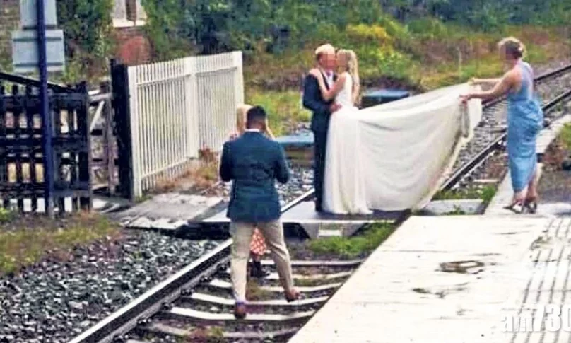 《泰晤士報》報道,這對「玩命鴛鴦」疑似婚禮後意猶未盡,趁防疫限制下列車班次減少,便不顧危險,特意走到路軌拍婚照,「留住難忘一刻」。報道指,事發車站位於北約克郡Whitby附近,交通警察暫未能確認兩人身份。