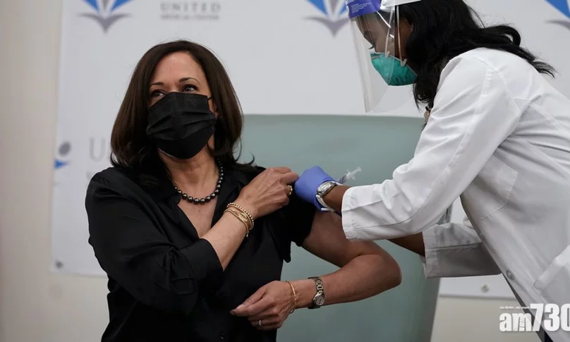 美國候任副總統賀錦麗,在電視台直播下接種新冠肺炎疫苗,她呼籲民眾接種疫苗。
