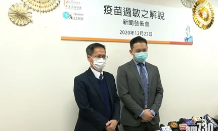 香港過敏協會今日召開記者會,回應政府計劃購買3款新冠肺炎疫苗問題。協會表示,疫苗過敏有被誇大的情況,常規疫苗接種是安全,過敏反應的風險亦甚低,約每100萬名市民先有一個出現嚴重過敏反應,例如昏厥和休克等,不過接種疫苗的好處甚多,惟今次新冠肺炎疫苗可能比較受關注,且目前有關數據不足。