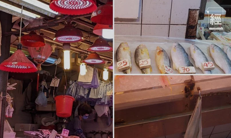 港大抗疫最前線團隊24日走訪中西區、油尖旺區和葵青區的4間街市的魚檔,發現其中3個街市的大部分魚販會提供共用毛巾。(圖片:AM730)