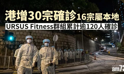 衛生防護中心表示,本港新增30宗新冠肺炎確診個案,14宗屬輸入個案,16宗為本地病例,當中1宗源頭不明,15宗屬相關個案,URSUS Fitness群組再多13人染疫,累計已有122人確診,包括7名員工、85名顧客及30名緊密接觸者;另本港有10多宗初步陽性個案,其中亦有數人涉及URSUS Fitness群組。