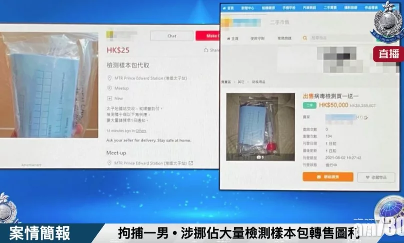 警方早前接獲線報,指有人在檢測樣本包派發點大量索取樣本包後,再於網上交易平台轉售圖利。經調查後,警方網絡安全及科技罪案調查科昨日以「盜竊」罪拘捕了一名55歲懷疑涉案男子。