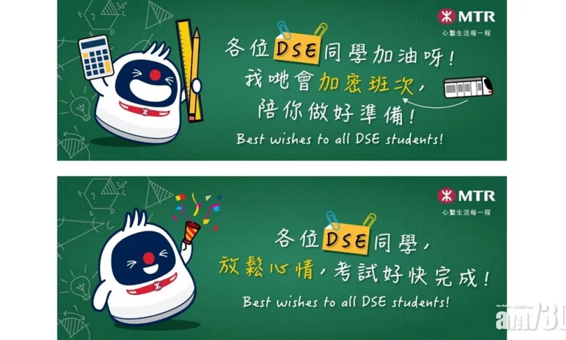車站及列車車廂會有「鐵仔」的打氣訊息,向考生們送上支持和鼓勵,港鐵亦祝願各位中學文憑試考生一切順利。