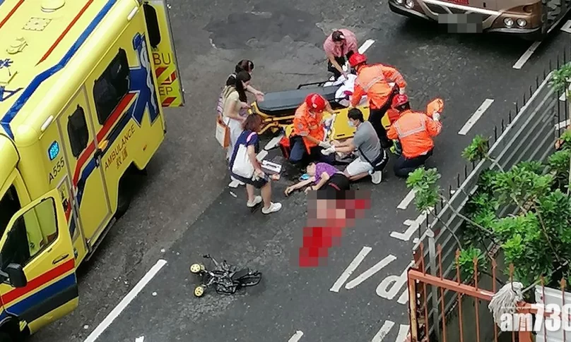 昨日下午2時許,在啓田道啟田商場對開,一輛垃圾車沿啓田道往西行,期間撞到一名過路老婦,老婦重傷倒地,其中一隻腳更被垃圾車輾過重傷浴血,現場市民見狀立即報警及上前協助。