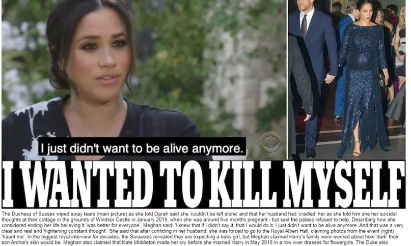 英國亨利王子與妻子梅根接受美國名嘴奧花雲費專訪,焦點之一是梅根指控基於膚色問題,兒子阿奇才不獲封王子稱號,以及是長嫂凱特惹哭她,非之前報道所指她惹哭對方,王室人員寧願說謊來保護其他王室成員,自己則遭人格謀殺,並稱自己曾有自殺念頭。訪問播出後,引發梅根派與英國王室派在網上開戰,英國傳媒《每日郵報》的報道引來逾3,000則留言,有人說兩人似乎都很不開心,尤其是亨利;留言批評梅根的比較多,有人嘲笑稱,「現在提名梅根角逐奧斯卡最佳女演員是否太遲了?」也有不少人支持褫奪兩人全部封號。