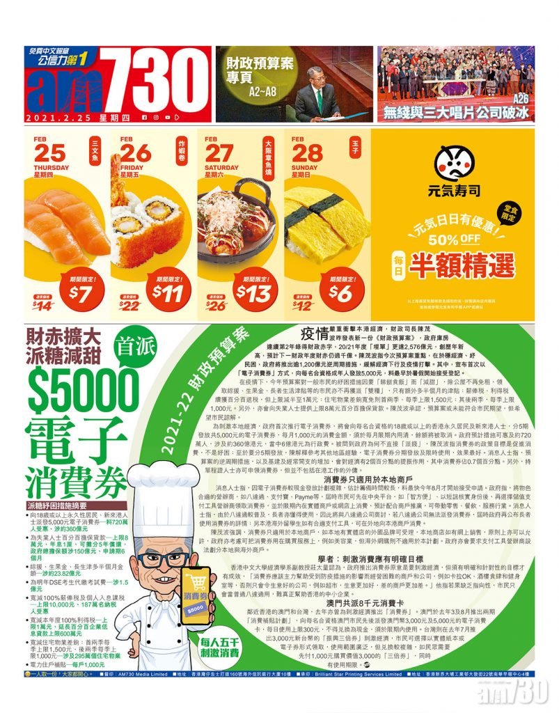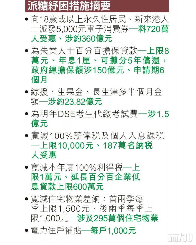 財赤擴大 派糖減甜 2021-22財政預算案 首派$5000電子消費券