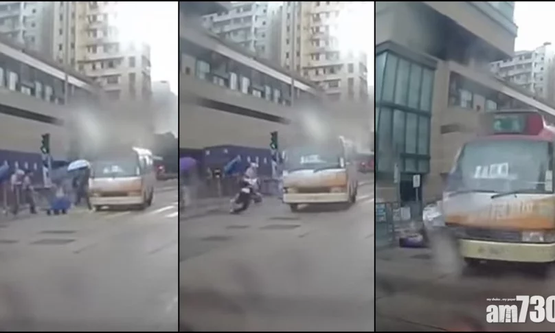 車Cam片段顯事時間為今早9時許,有行人開始橫過馬路,而在三綫行車路上,其中兩綫的汽車均放慢至燈位前停下,惟左綫一輛直駛,將其一名持雨傘的男子撞至飛起,男子落地後更滑前數米始停下,至於紅Van繼續滑前更擺尾,車尾更撞到停在路旁、拍攝到整個過程的的士。惟車Cam未有拍到當時交通燈號狀況。