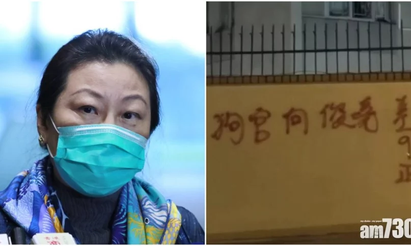 昨晚,遭民建聯立法會議員葛珮帆及周浩鼎等投訴裁決偏頗的前東區法院裁判官何俊堯,有人發現在九龍塘有大廈圍牆上漆有侮辱他的字眼,直指「狗官何俊堯、差人拉人、9官放人、正X街」,此外附近亦散落數十張寫有「千奠古、司法毒瘤」的何俊堯大字報。警方就事件列作刑事毀壞,正展開調查。