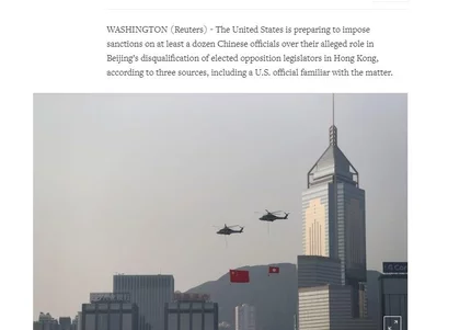 【DQ議員】路透社:美擬制裁十多名中港官員 經濟一週 社會熱話 Dec 7 2020 分享至 網民熱話 廣告 特區政府早前根據全國人民代表大會常務委員會決定,宣布取消楊岳橋、郭榮鏗、郭家麒和梁繼昌的立法會議員資格。路透社引述多個消息來源報道,美國正準備對十多名中國官員實施制裁,當中包括人大代表及中國共產黨員,原因是他們涉及取消多名香港民主派議員資格,制裁措施包括凍結資產及金融制裁。報道又稱,被制裁對象亦可能包括本港官員。美國國務院及白宮暫未回應。 閱讀全文 資料來源:AM730 分享至