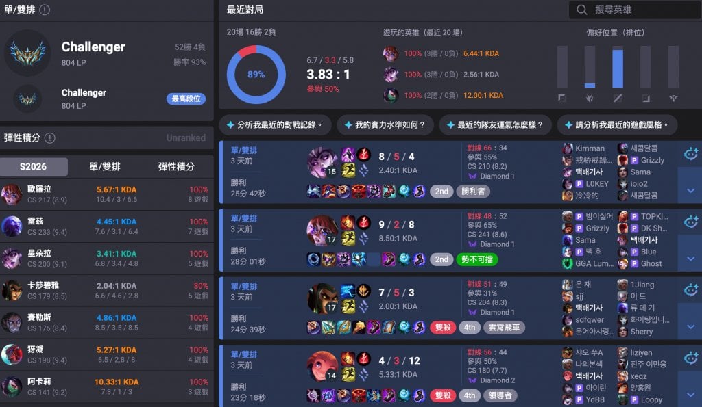 被視為《英雄聯盟》競技巔峰的韓服天梯,近日出現了一個足以令職業選手集體戰慄的神秘帳號?這個名為「택배기사(意譯:快遞員)」的帳號自1月8日開啟積分賽後,在短短兩天內展現了非人類的體能與技術,從中午12點不眠不休對戰至凌晨2點,累積56場對局竟取得52勝,勝率高達驚人的93%,排名一度衝上韓服第四名。這種近乎完美的走位、預判以及深不見底的英雄池,讓玩家社群議論紛紛,不少人猜測這是否就是馬斯克(Elon Musk)旗下xAI秘密測試的「Grok 5」戰鬥演算法。
