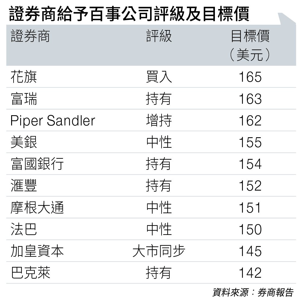 富國銀行將百事目標價由150美元調高至154美元,投資評級則維持「持有」(見圖表)。