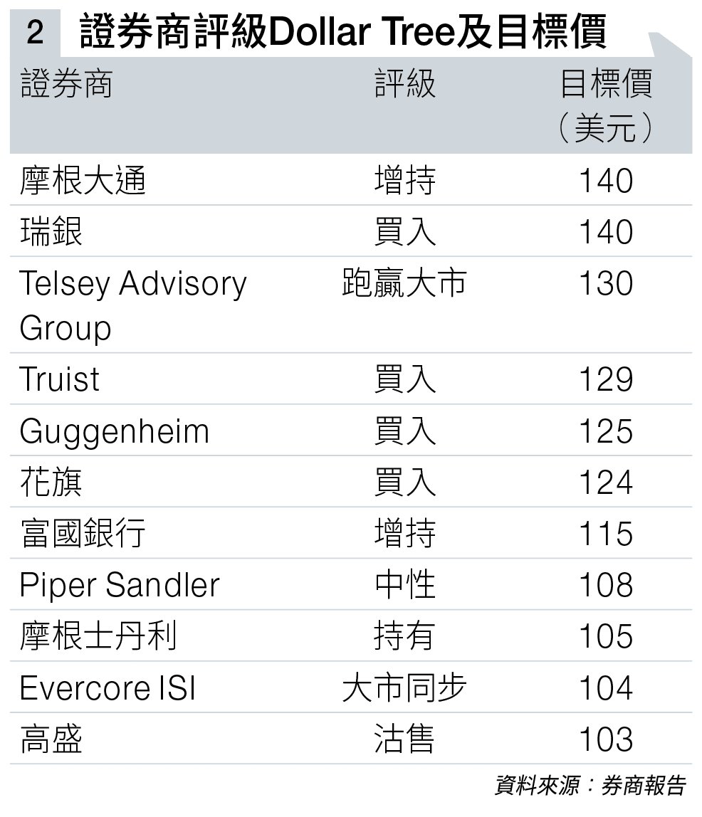 至於證券商對Dollar Tree之評級及目標價尚算中性(見圖表二),讀者不妨參考。