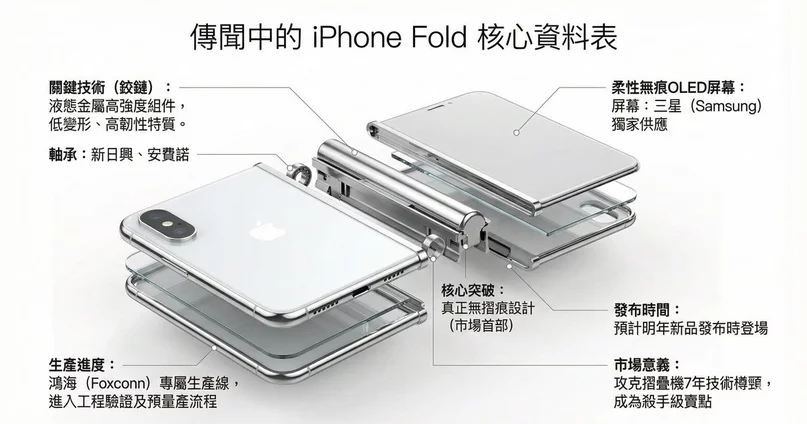 報導指,這款有望命名為「iPhone Fold」的新機,其內屏幕由三星獨家供應,但面板結構及疊層壓合等關鍵製程均由蘋果主導。