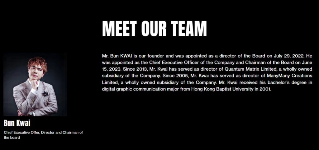 根據公司網站,QMMM主要從事數碼媒體廣告服務,創辦人兼行政總裁為47歲的桂濱(Bun Kwai),他於2001年畢業於香港浸會大學。據年報,他持有公司約48%股份,按停牌前股價計算,其紙上富貴一度高達9.9億美元。