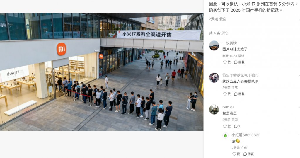 分析師郭明錤狠批小米17銷售慘敗 下修出貨量20% 恐成業界笑柄 小紅書現AI爆搶圖