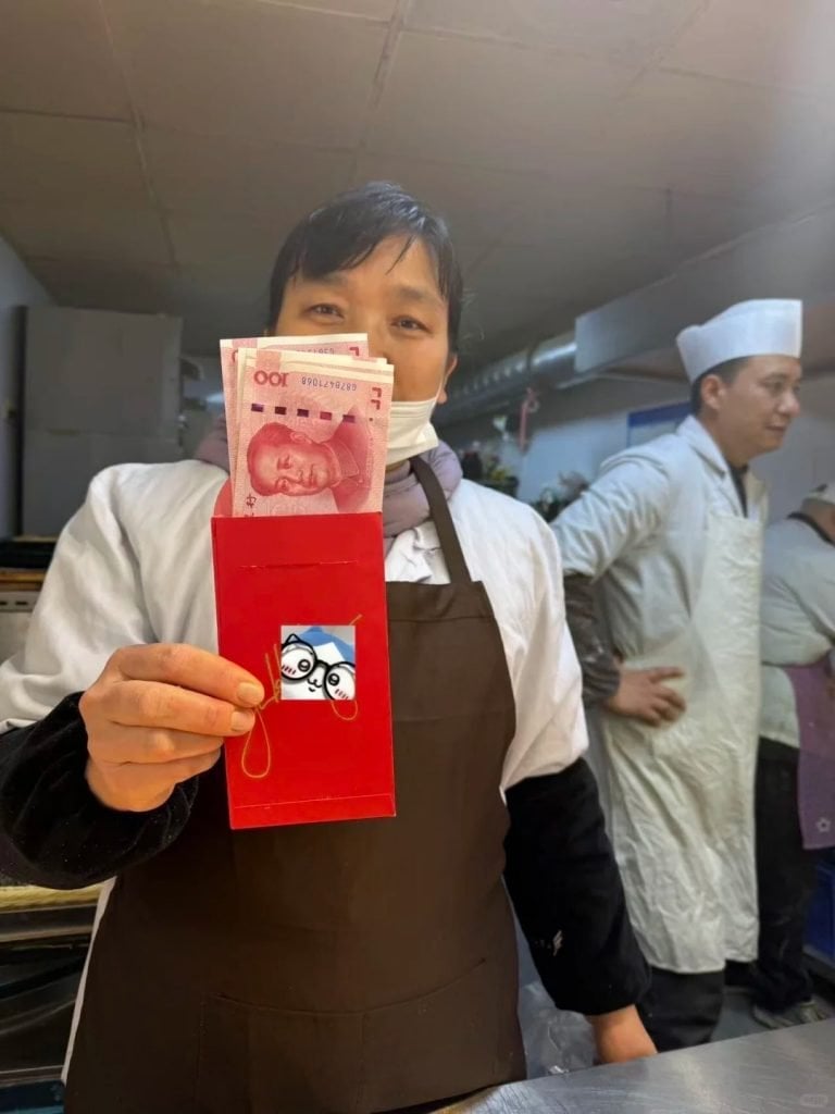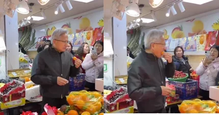 【多圖有片】黃仁勳現身上海街市食生果 周圍派利是 即睇內有幾錢?分析:實為爭取北京「放行」H200 晶片