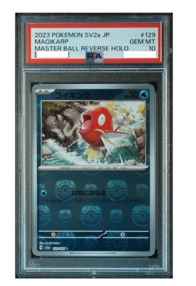 歷史與受歡迎原因:出自 Pokémon 151 系列 (SV2a)。該系列每盒擴充包僅保底 1 張「大師球 (Master Ball)」反閃(Reverse Holo)卡,這使得特定熱門寶可夢(如鯉魚王)的大師球版本極難抽中,稀有度極高。市場售價:香港 7-11 定價為港幣 $2,670。外國網站顯示價格約 $166 至 $240 美金(約港幣 $1300-$1,870),eBay 上的 PSA 10 成交價約在 $240 到 $359 美金(約港幣 $1,870-$2,800)之間。