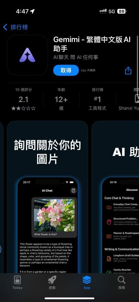 港人盲搶 Gemini 竟然 down 錯「朱咪咪」山寨 Gemimi 衝上App Store 工具榜第 4