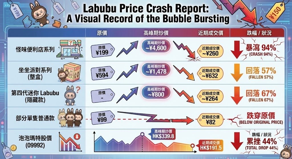 | 第四代迷你 Labubu (隱藏款) | – | ~$800 | ~$264 | 回落 67%。 |