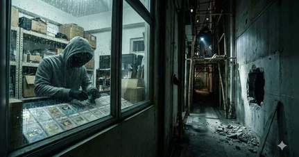 多間美國媒體報道,2026 年 2 月 19 日凌晨,數名賊人先闖入 DOWE(Do-We)Collectibles 隔鄰商舖,之後鑿穿兩舖之間的共用乾牆(shared drywall)進入收藏店,再以工具砸碎玻璃展示櫃,短時間內掠走大量高價寶可夢卡。